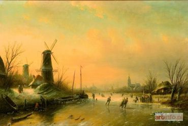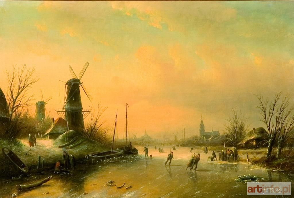 1064 Łyżwiarze, olej na płótnie, 45,5 x 67 cm, sygn.p.d. "J.J.C Spohler"