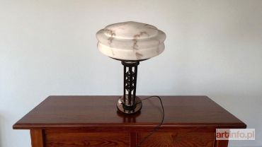 Art Deco, podstawa z metalu niklowanego, klosz ze szkła selydonowego.