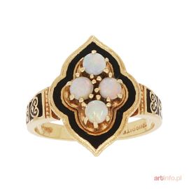 PIERŚCIONEK Z OPALAMI, KON. XIX W. ,