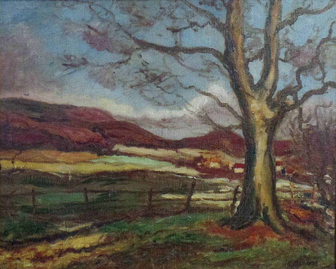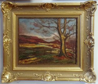 olej na płótnie naklejonym na płytę o wym. 40x 49 cm, sygn p/d. Na odwrociu kartka opisowa z galerii w języku angielskim.
