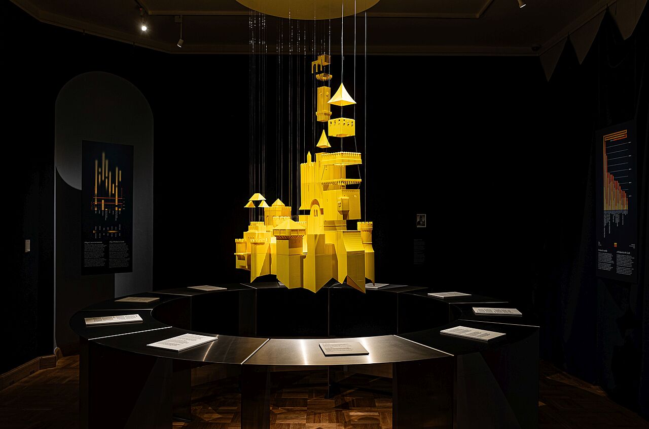 Instalacja proponuje krytyczne przepracowanie zamczystości. Artyści redukują zamek
